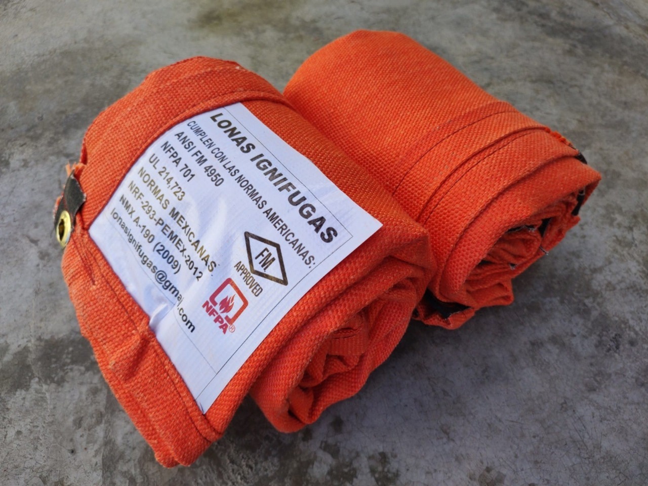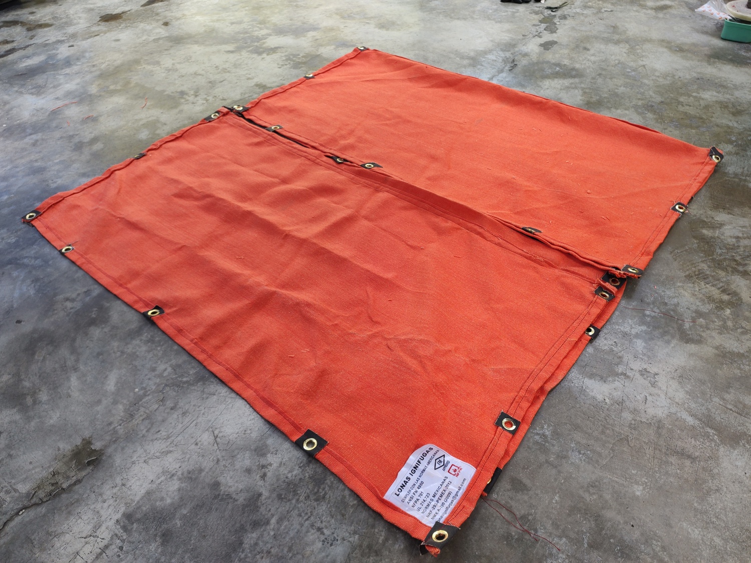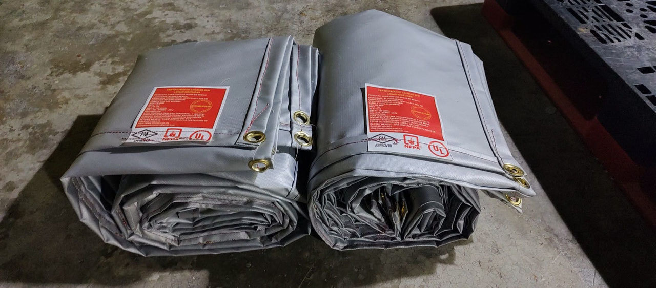 Lona Ignifuga de fibra de vidrio util para procesos de soldadura, soporta altas temperaturas, escoria de metal fundido, salpicadura y chispa de soldadura, cumple con la norma de referencia NORMA NRF -293-PEMEX-2012 - Lona Ignifuga para uso horizontal cumple con las normas americanas NORMA ANSI FM 4950 - NORMA NFPA 701 - NORMA UL 214 - 723